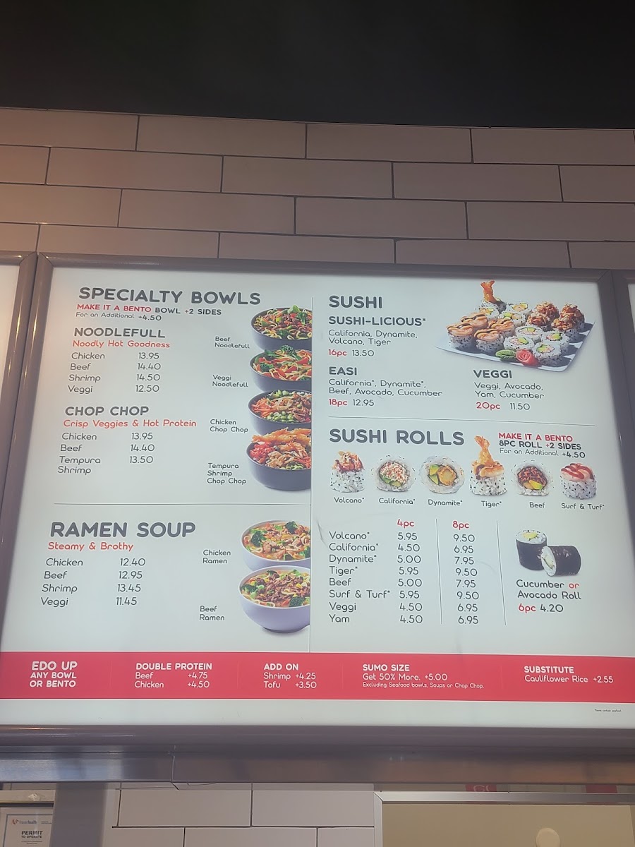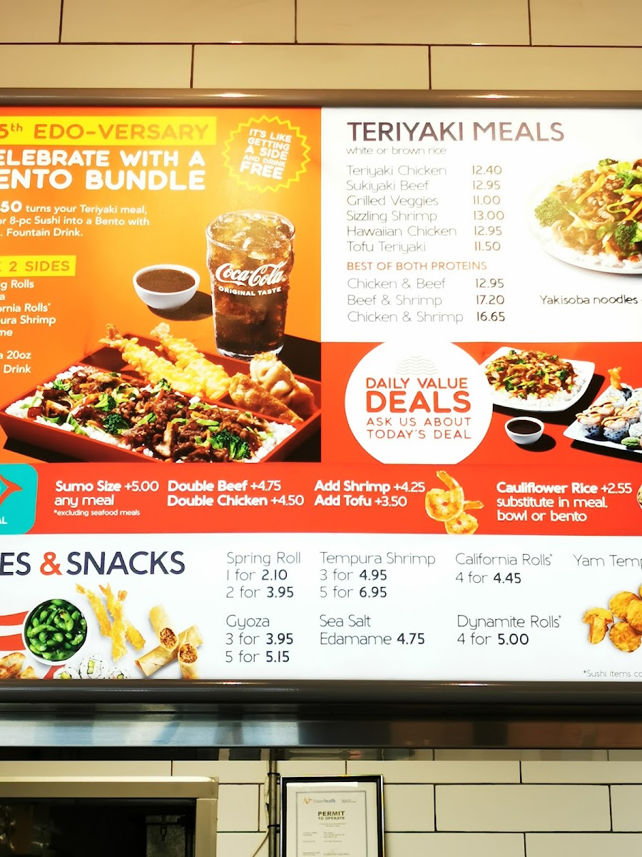 The menu at Edo Japan features a range of freshly prepared dishes that are both flavorful and satisfying. Diners rave about the signature teriyaki sauce, which enhances every bowl. With dishes made right in front of you, freshness is guaranteed. Whether you're in the mood for a quick meal or something more substantial, this location offers fantastic value, especially when using the app for orders.